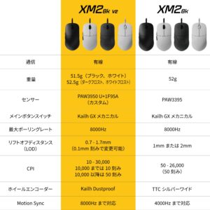 有線・8000Hzポーリングレート対応のゲーミングマウス「XM2 8K」のセカンドバージョン。パラコードケーブル「Flex Cord 6.0」とPCとの常時データ接続により、パワーセーブ機能が不要で常にベストパフォーマンスを発揮できる。「GXスピードモード」に設定すると、超低遅延のクリック速度により、クリック音が聞こえるよりも先に入力できる。カラーは4色展開。