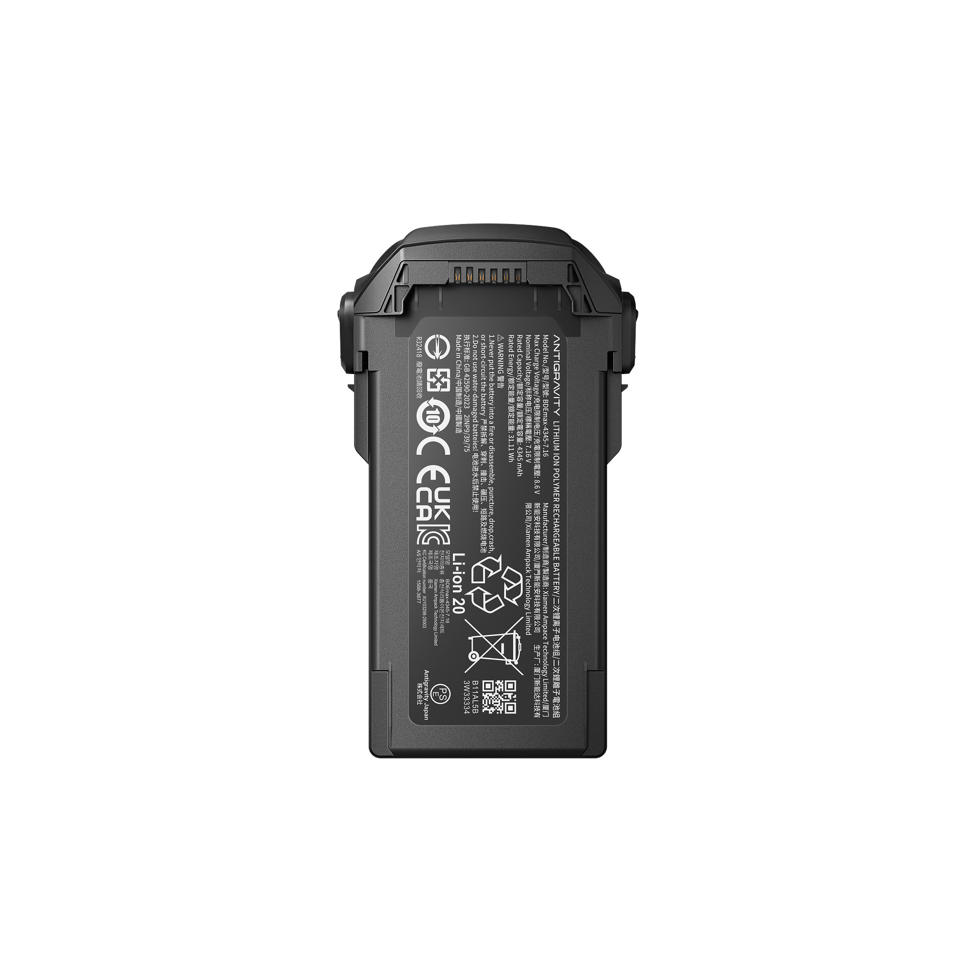 | 充電時間 | 単体バッテリー:60分で100% 3 個のバッテリー:3時間で100% 25°Cの実験室環境で、Antigravity 65W GaN 充電器と A1 バッテリーハブを使用してテスト済み |