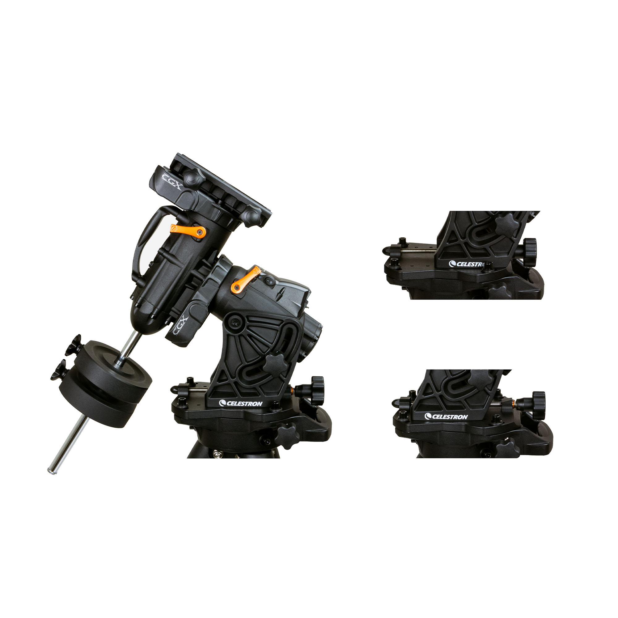 最大負荷時でもスムーズな調整が可能な緯度調整機構や、アリ溝式クランプノブを搭載しています。