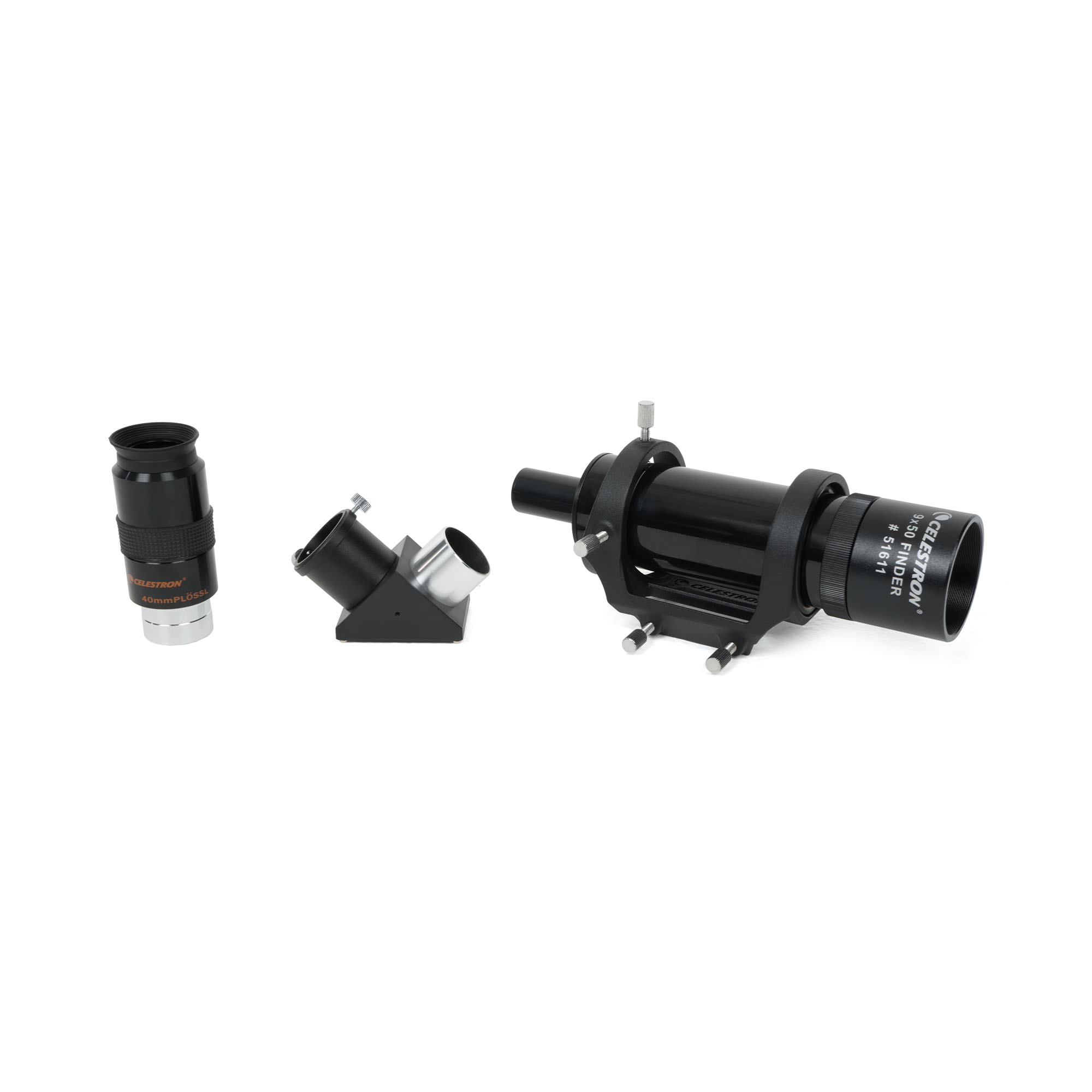 クイックリリースブラケット付きの9倍50mmのファインダーが付属。目的の天体をより正確に視野内に導入する際に役立つように設計されています。