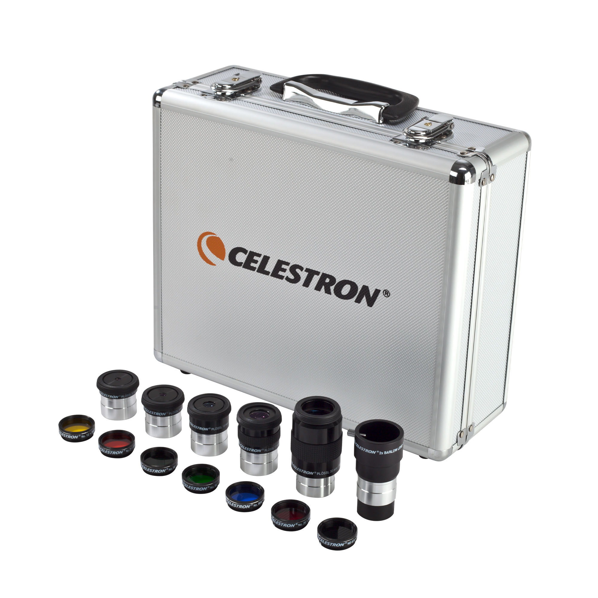 5種類の接眼レンズ、2倍バローレンズ、7種類のフィルター、および金属製ケースで構成されています。