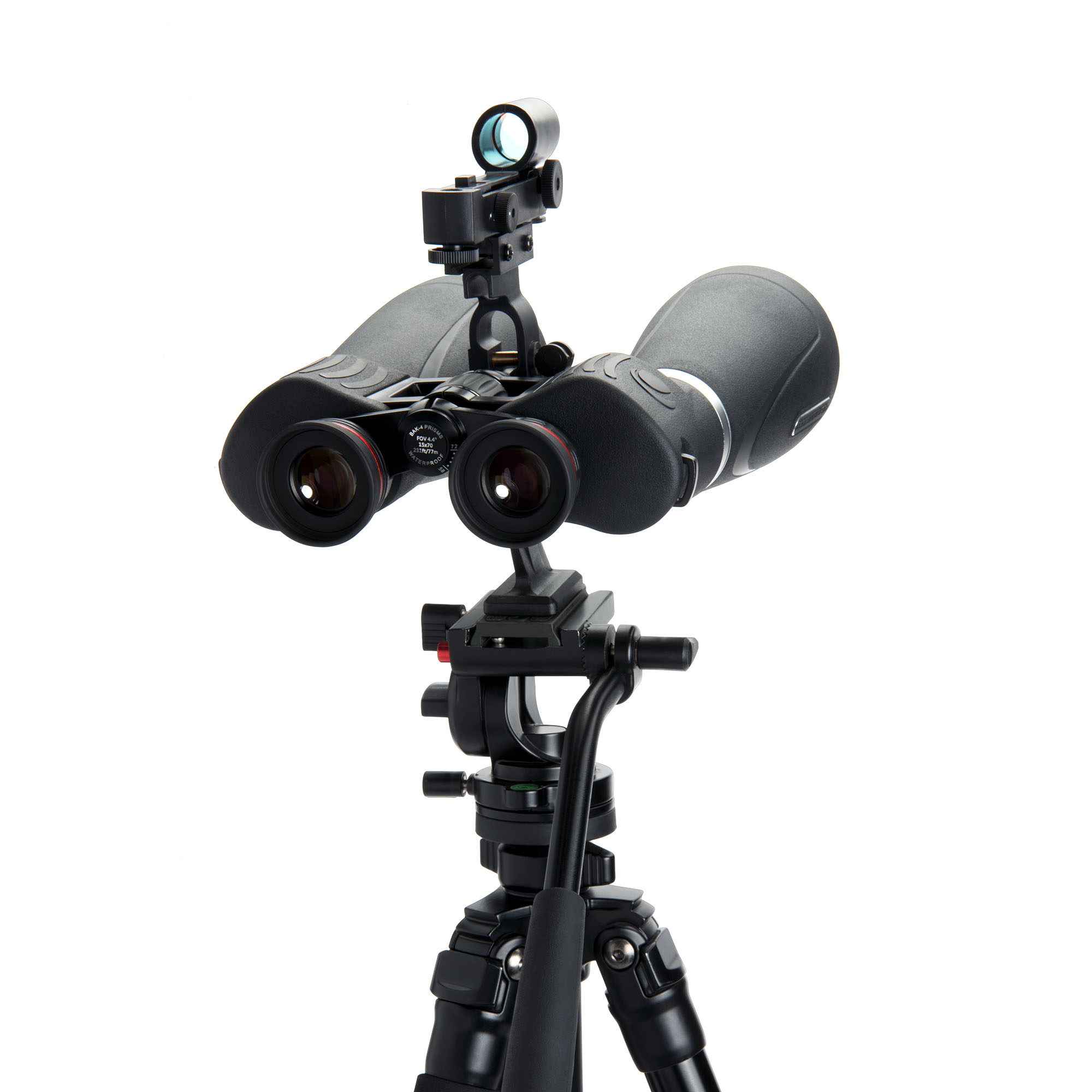 三脚アダプターは、長時間の観察時により高い安定性を得るために双眼鏡を三脚に取り付けることを可能にし、付属のRSR(Reflex Sight Ready)レールを利用してオプションのレッドドットファインダーを取り付けることもできます。このレッドドットファインダーを双眼鏡と適切に調整することで、観測対象を素早く見つけ、視野の中心に合わせるのに役立ちます。