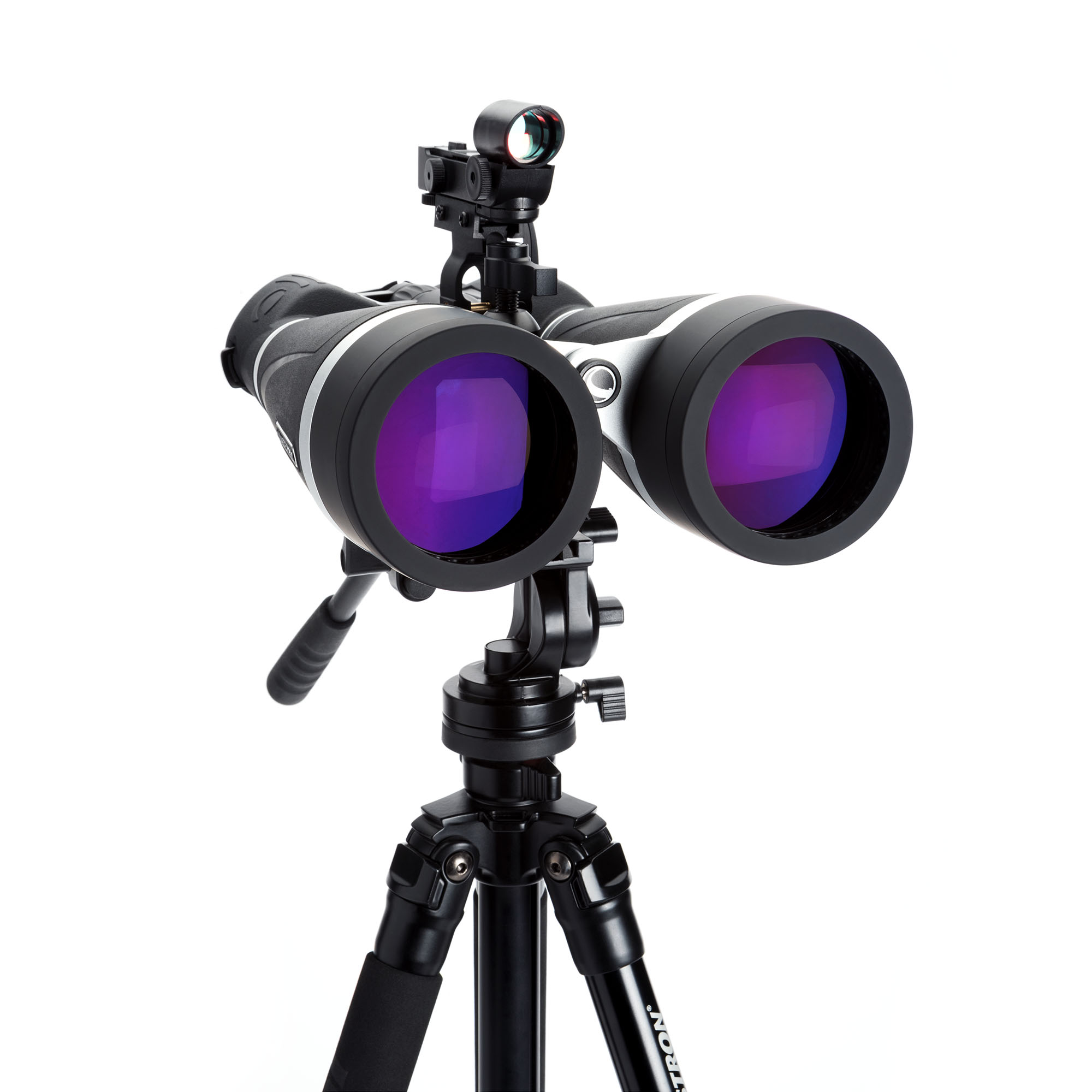 三脚アダプターは、長時間の観察時により高い安定性を得るために双眼鏡を三脚に取り付けることを可能にし、付属のRSR(Reflex Sight Ready)レールを利用してオプションのレッドドットファインダーを取り付けることもできます。このレッドドットファインダーを双眼鏡と適切に調整することで、観測対象を素早く見つけ、視野の中心に合わせるのに役立ちます。
