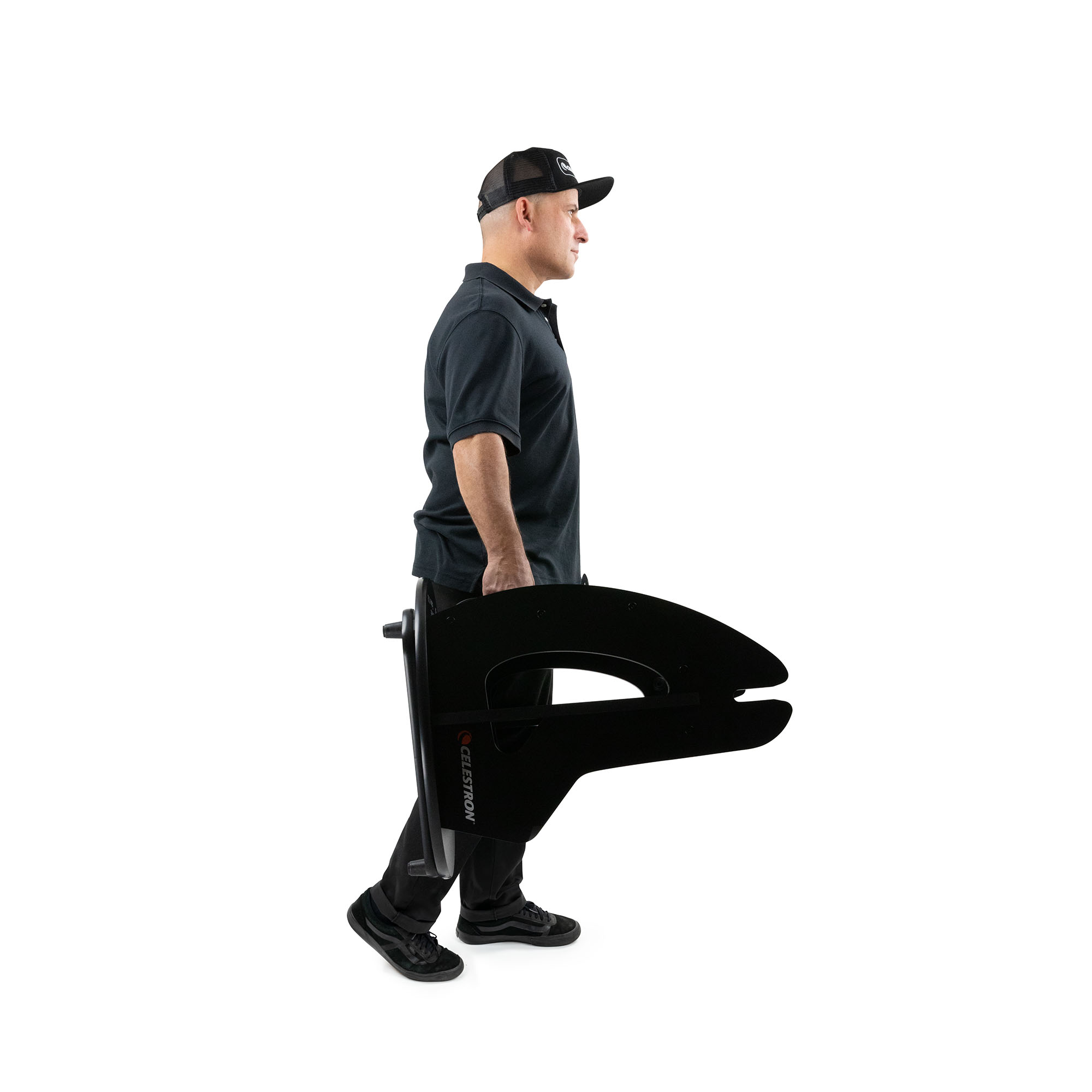 鏡筒とベースのバランスポイントに配置されたキャリーハンドルにより、大口径ながら持ち運びやすさを確保しています。
