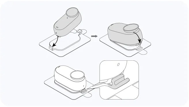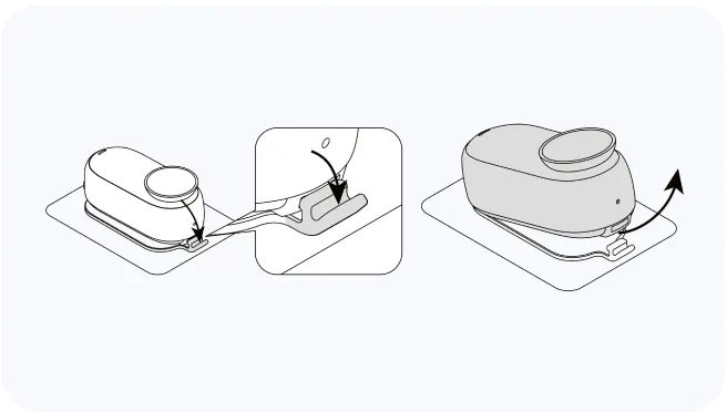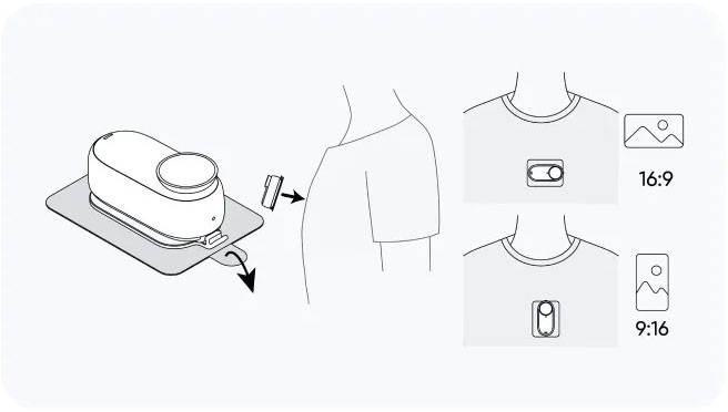 | 使用方法 | 1.カメラを粘着タブに取り付け、粘着タブのロッキングタブをカメラの磁気マウントポイントにクリップ留めしてしっかりと固定します。 ![]() 2.粘着タブ面のフィルムを剥がし、衣服などきれいで乾いた 面に貼り付けます。水平または垂直に貼り付けて、横向きま たは縦向きで撮影することができます。使用前に、粘着タブがしっかりと貼り付けてあることを確認します。 ![]() 3.ロッキングタブのクリップを外すと、カメラを粘着タブから安全に取り外すことができます。 ![]() |