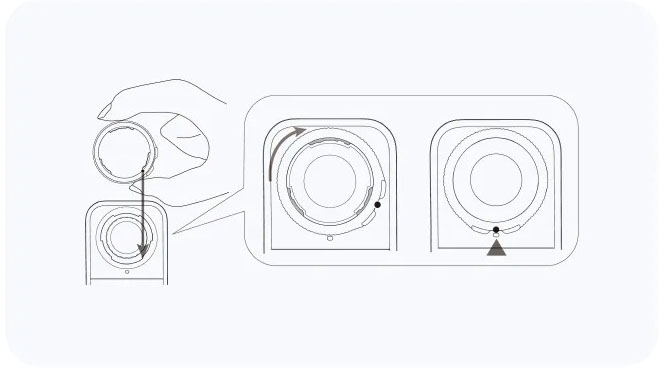 | 使用方法 | 1.レンズガードの取り付け 下図のように、レンズガードのノッチをレンズ右下の溝に合わせます。オレンジ色のマークがカメラのマイクに合うまで時計回りに回します。 ![]() 2.取り付け確認 レンズガードをタッチスクリーン側に取り付けると、カメラのステータスバーにPREMアイコンが表示され、その後でポップアップメッセージが表示されます。ポップアップをタップして確認します。 ![]() 3.レンズガードの取り外し レンズガードを取り外すには、図のようにベースの端を持ち、反時計回りに回転させます。取り外すと、PREMアイコンはステータスバーから消えます。 ![]() |